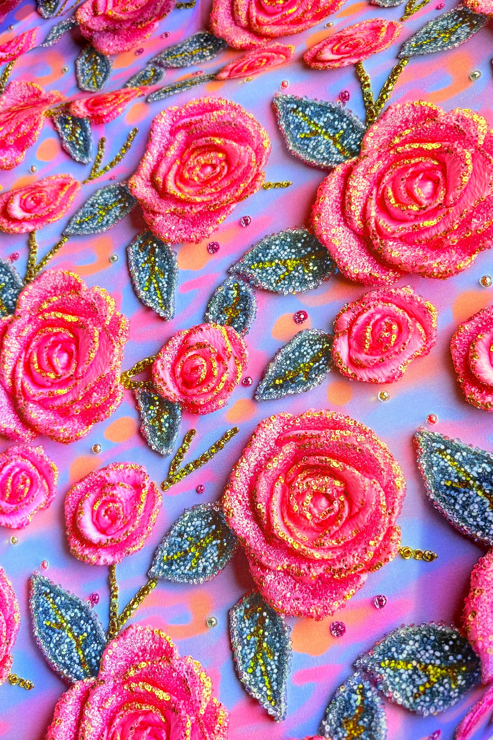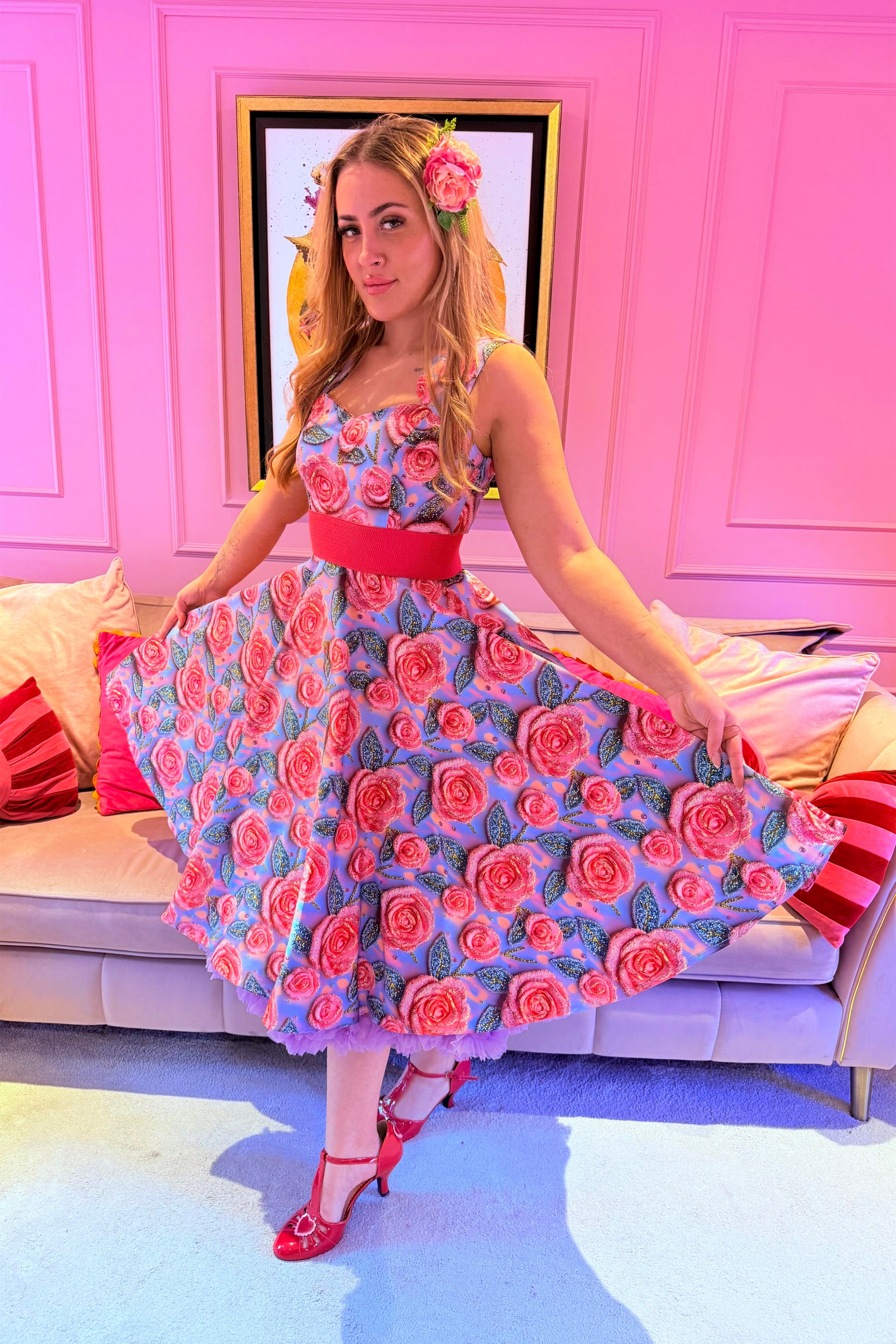 Add a touch of whimsy to your wardrobe with our Sugar Flower Swing Dress. Featuring a fun 3D crystal and glitter dipped roses print, this dress is both playful and feminine. With a flattering neckline and convenient pockets, this dress is perfect for any occasion. Stay stylish this season with our new must-have dress.
