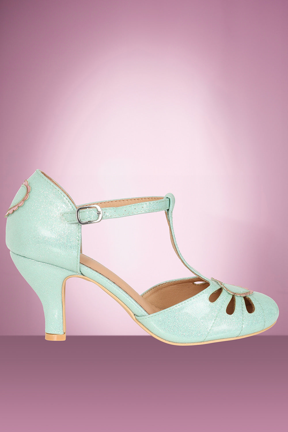 Our Mint Sweetheart T-Bar heels are a love letter to 1950s femininity, finished in soft mint shimmer with the prettiest blush pink heart detailing. Elegant, playful and utterly timeless, they’re made for twirling beneath fairy lights and stealing admiring glances.