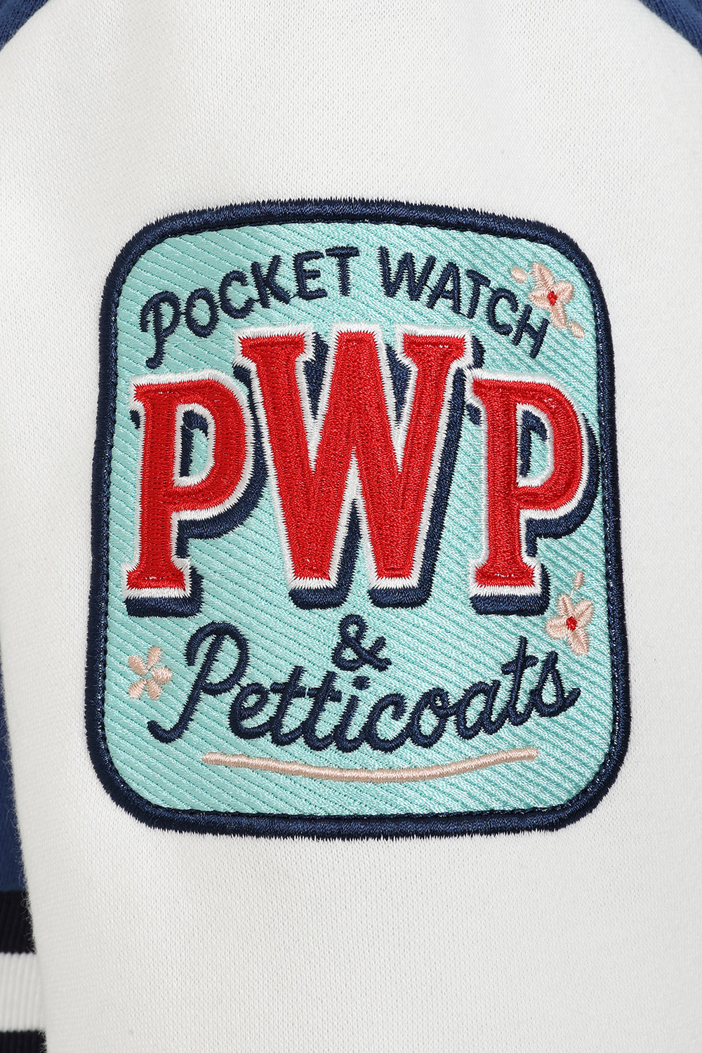 The Pocket Watch & Petticoats Cropped Bomber Jacket is the statement piece your retro wardrobe has been waiting for. Designed with that perfect blend of vintage varsity charm and playful pin-up attitude, this cropped silhouette is made to flatter while turning serious heads.