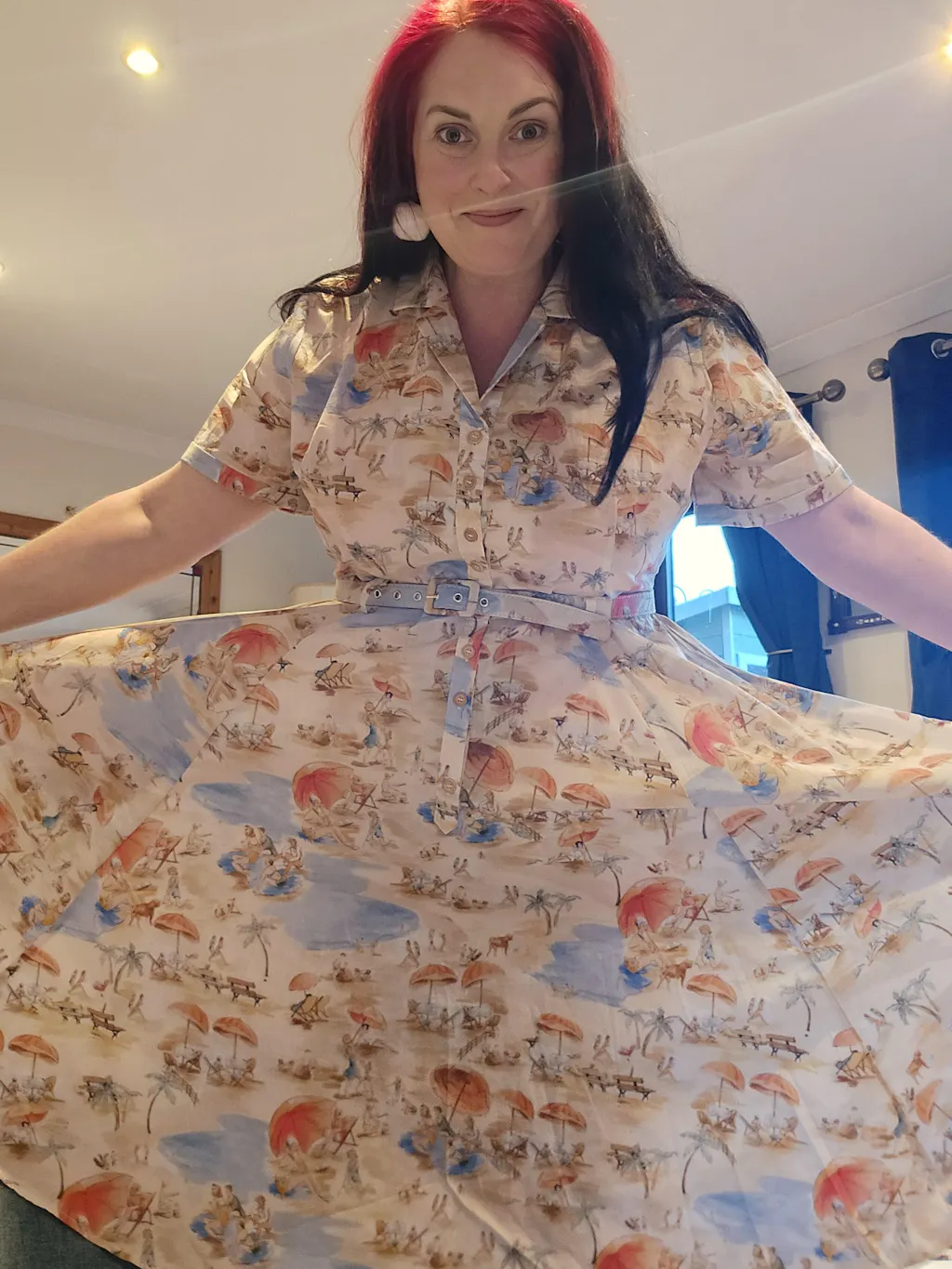 Another beautiful dress from Pocketwatch and Petticoats! Gorgeous print in a lovely light material. As always a flattering fit. Perfect day dress for all occasions especially sunny days! Easy to dress up with a fluffy petticoat. 🥰