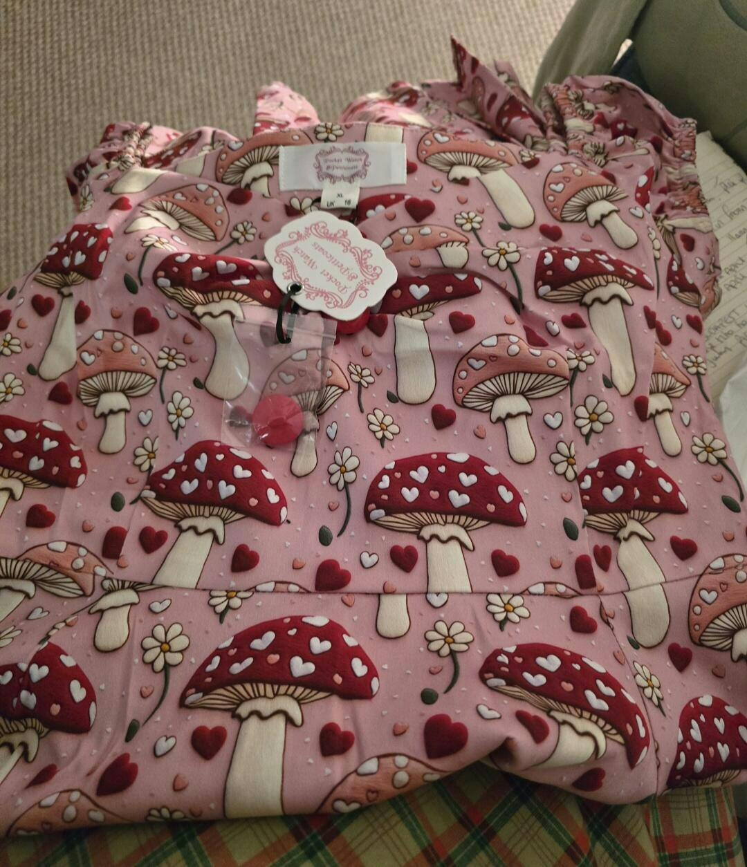 Absolutely stunning dress, the mushrooms stand out so vividly as if they are coming out from the fabric. As usual the dresses are gorgeous fabric, nice stretch, and make me feel a million dollars!