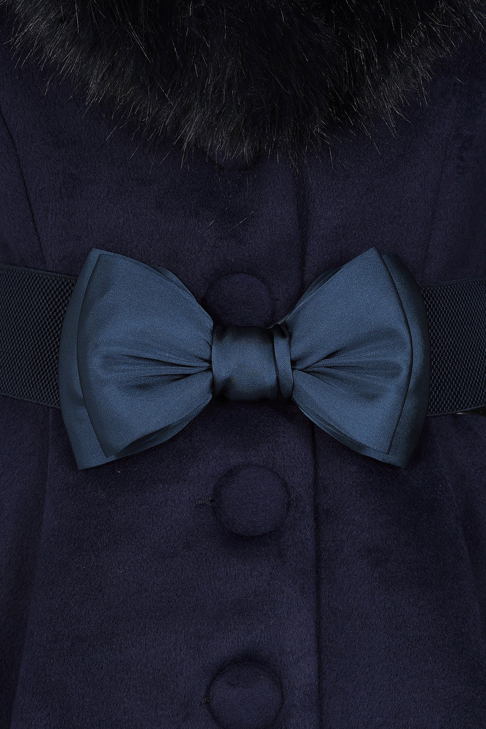 The Detachable Faux Fur Collar and matching navy buttons evoke the charm of mid-century design, while the tailored fit accentuates your waist, ensuring a flattering and feminine silhouette. The coat's versatility allows it to seamlessly transition from day to night, making it a wardrobe staple for any occasion.