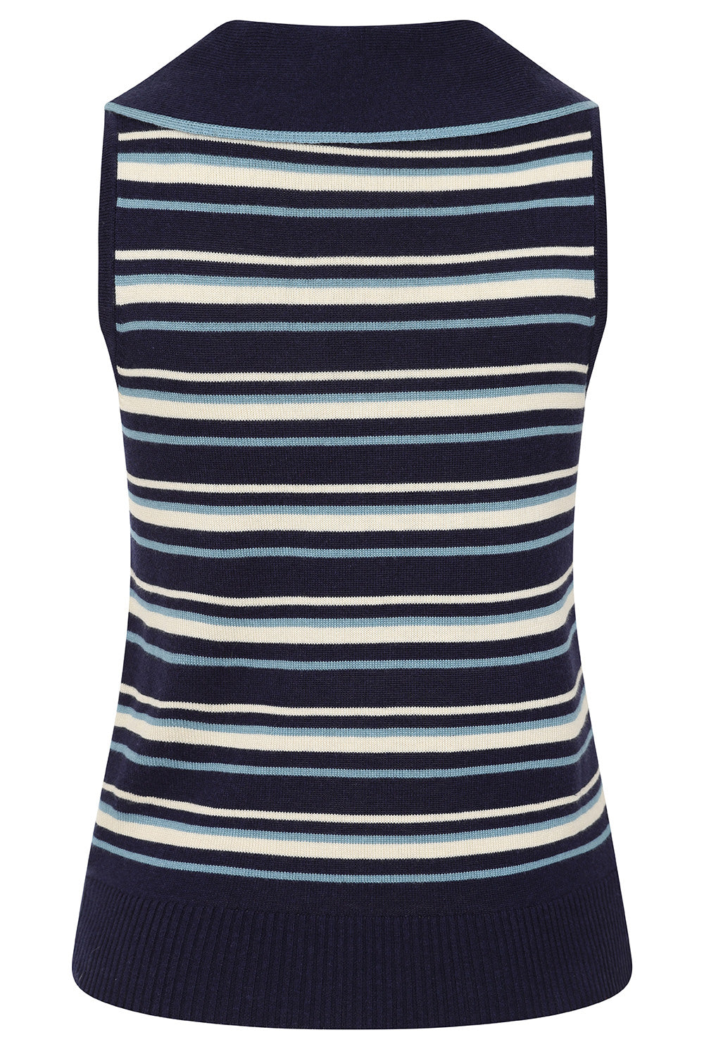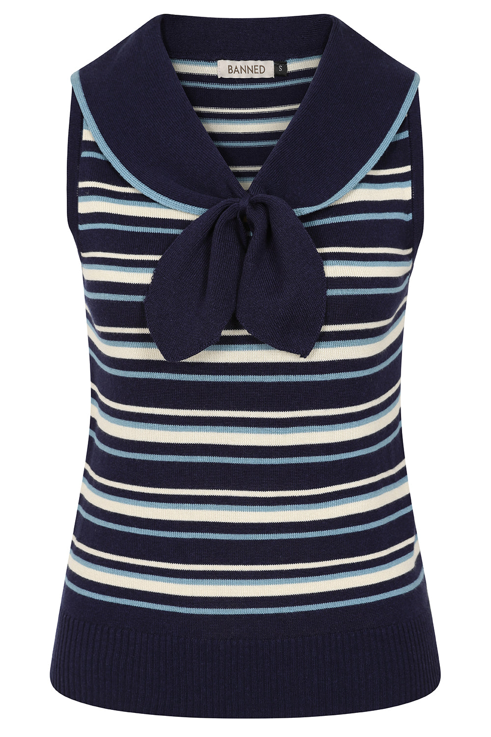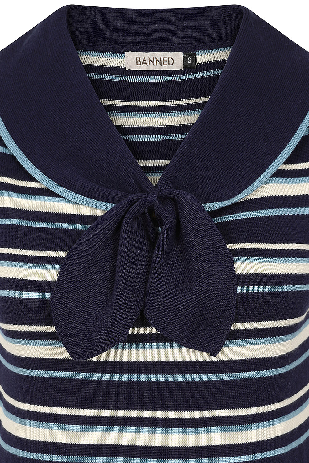 Get ready to sail away in style with Nora Striped Knit Top! This adorable top features a playful striped pattern and a unique contrast sailor embroidered collar with a front tie. Perfect for adding a touch of nautical charm to your wardrobe. Ahoy, fashionistas!