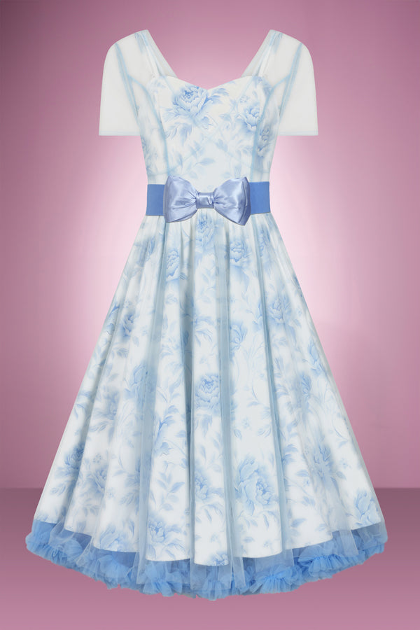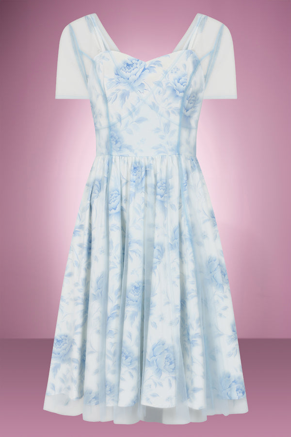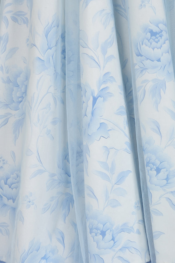 Elevate your style with our Porcelain Swing Dress. With its elegant spaghetti straps and delicate porcelain floral print, this dress exudes sophistication. The powder blue overlay adds a touch of uniqueness to its already beautiful design. Adjustable straps and a back zipper ensure a perfect, true-to-size fit. Perfect for any special occasion, you'll feel like royalty in this dress.