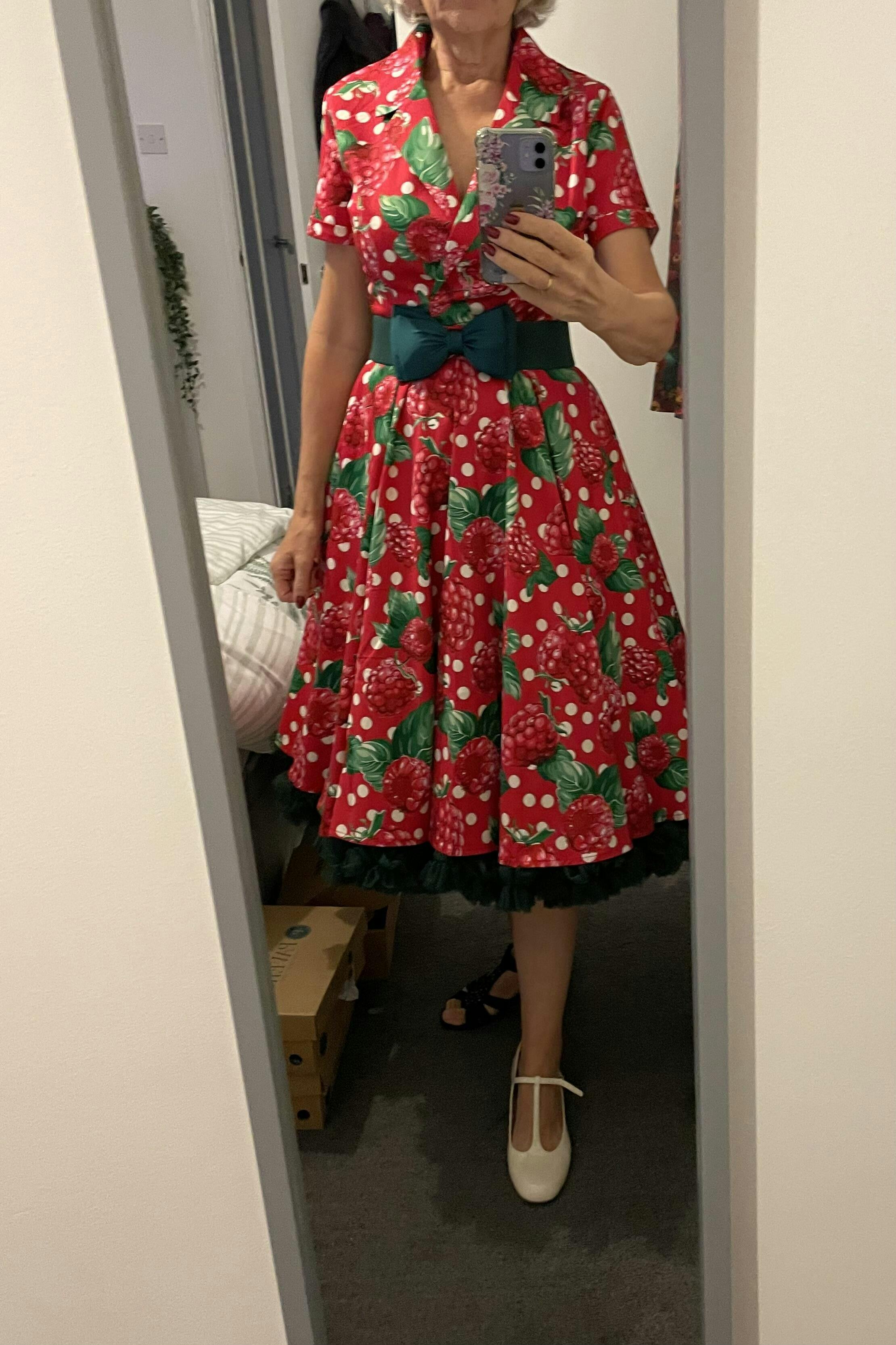 Get ready to swing in style with our Raspberry Ripple Swing Dress! This 40s cross over neckline is perfect for your autumn/winter wardrobe. Comes with pockets, side zip, full swing skirt and true to size!