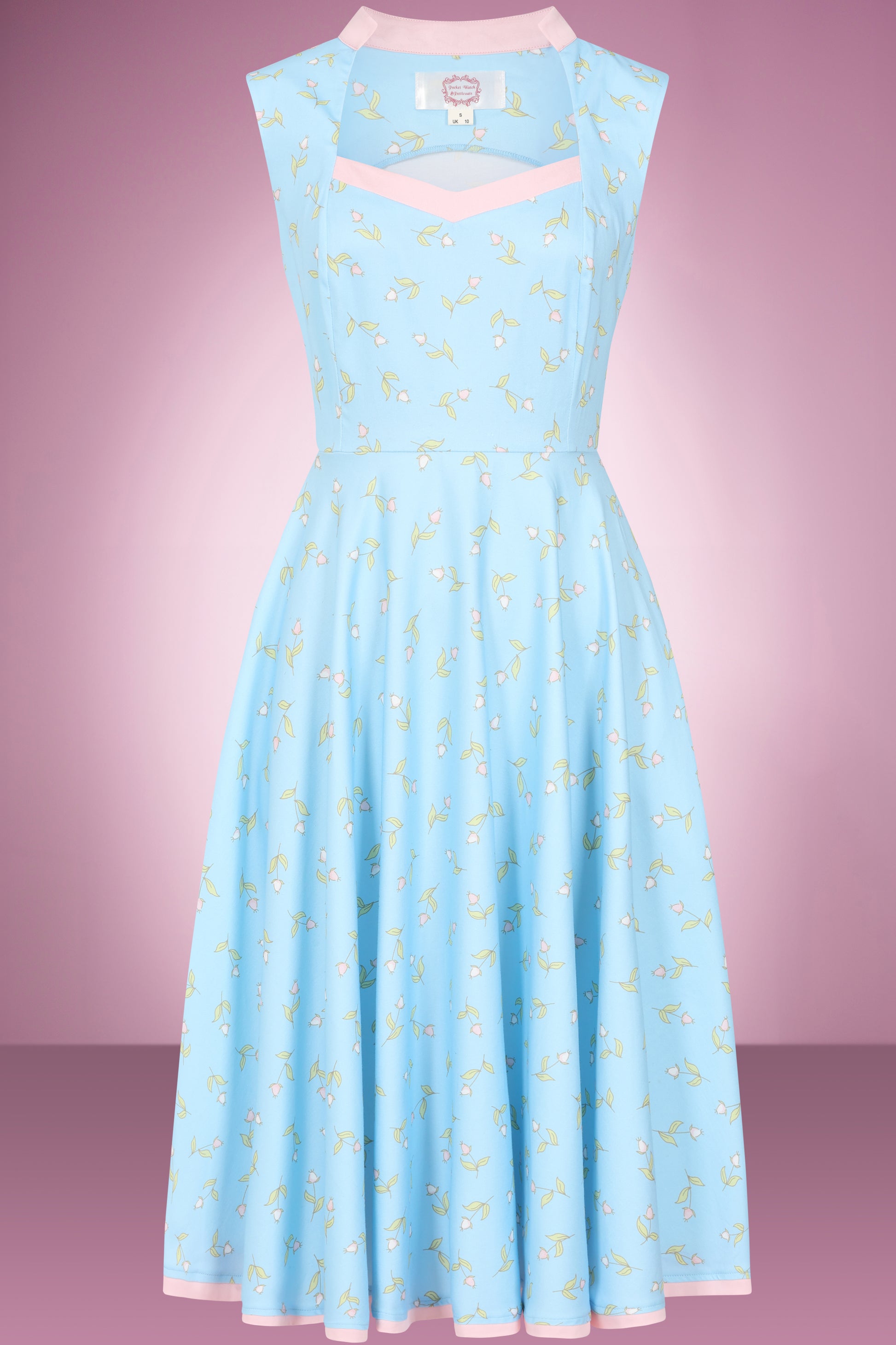 Get ready to swing into spring with the Spring Ditsy Swing Dress! This baby blue beauty sports a neckline that’s sweeter than a candy store (with pockets too, because who doesn’t love a little extra room for snacks?). With pink trim and spring flowers, it’s the perfect outfit for twirling into the new year of fabulousness!