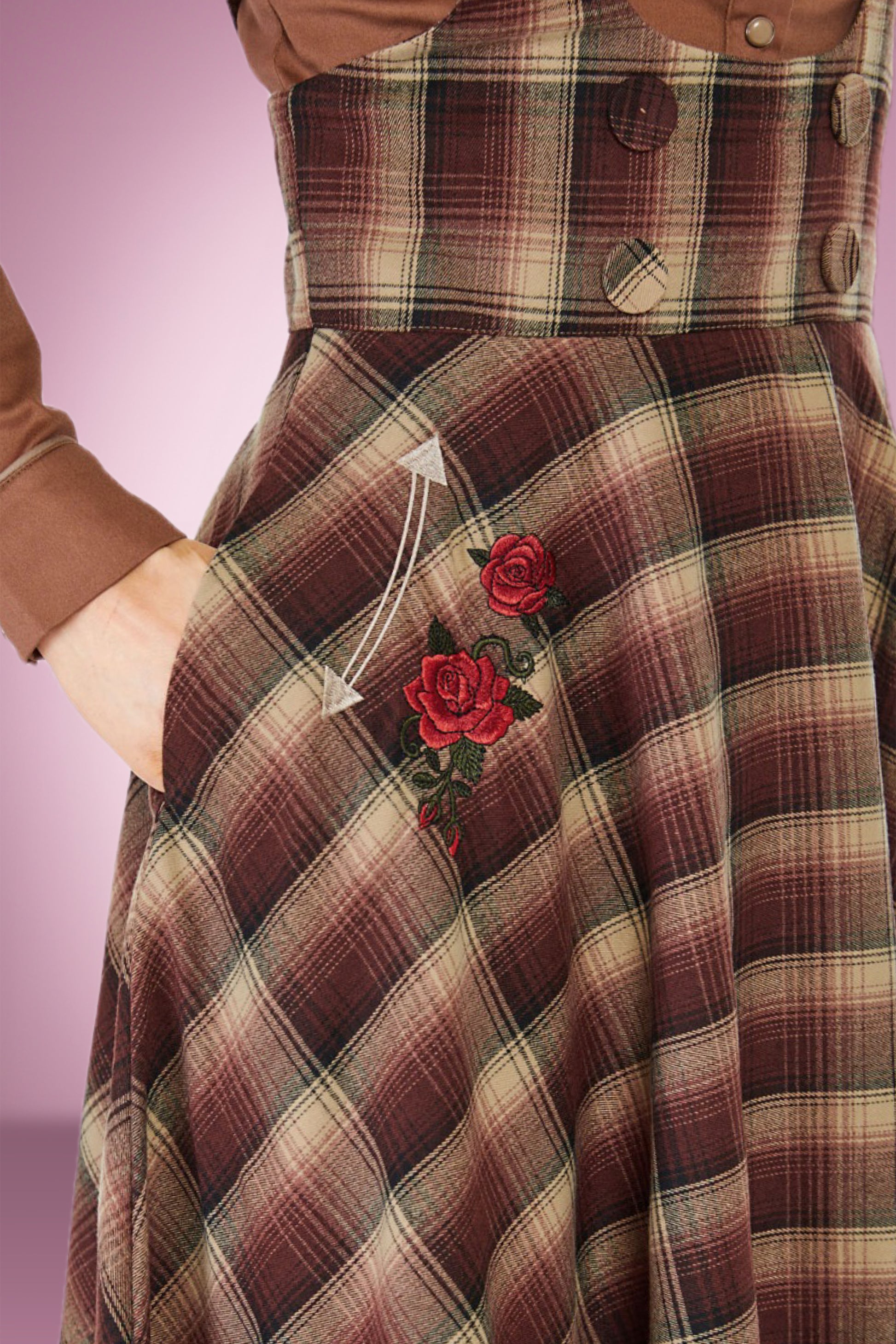 Saddle up in style with our Wild Western Pinafore Skirt! This retro pinafore features a playful plaid flare, with charming western and flower embroidery details. Adjustable straps and side pockets add convenience, while button and zip closures provide a perfect fit. Yeehaw!