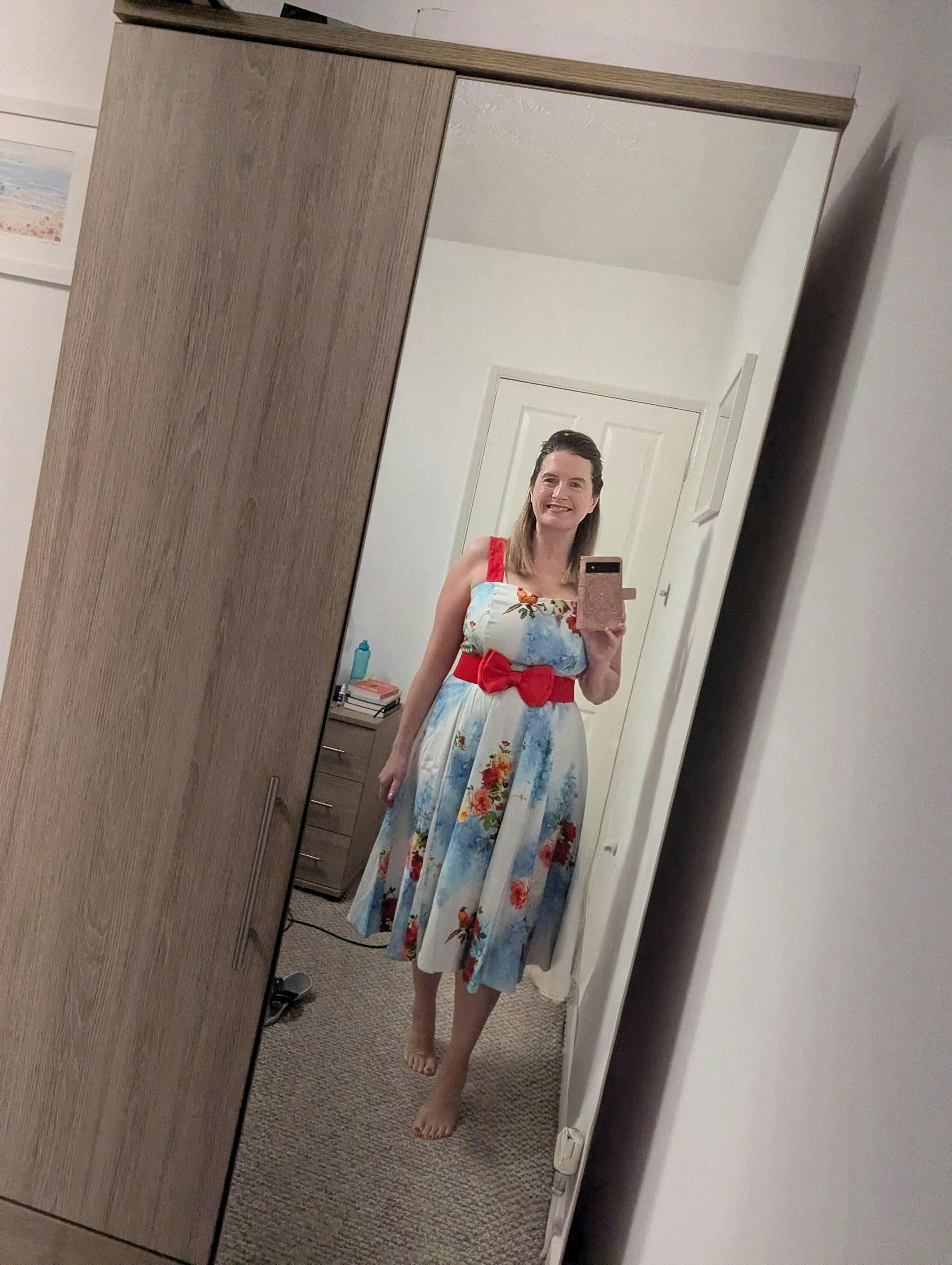 I'm looking forward to wearing this fabulously floral dress in Spain this summer. The fabric is quite light which will be perfect for the dance floor. The colours are beautiful and perfectly complemented by a red bow 🎀♥️👗